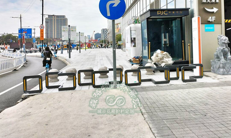 定制化車擋設施:在廣場與市政道路的銜接區域,設置了造型簡約的 U 型車擋,采用黑黃警示配色,既清晰劃分了機動車禁行區域,有效阻擋車輛闖入步行空間,又不遮擋行人視線,保障路口通行視野開闊。車擋采用高強度材質制作,適配市政道路的高頻使用場景,耐用性與安全性兼具。