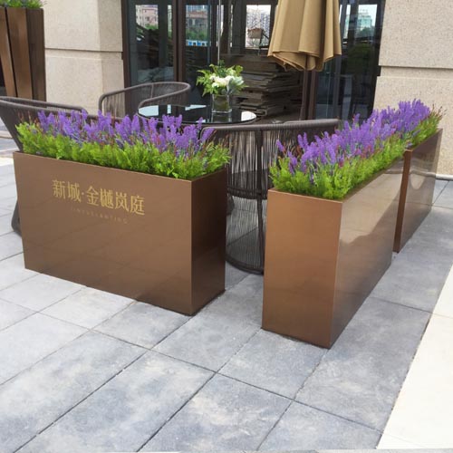 為迎合市場需求,我司特提供歐式、中式、室內、室外等多種類型的不銹鋼花盆,經濟實用;而室內花盆表面多做拉絲電鍍烤漆,美觀、醒目、色彩艷麗。不銹鋼種植花盆池能抵抗任何惡劣氣候材質:現目前很多戶外種植池大多采用木條制成,但為了使用年限更長很多人更愿意使用不銹鋼種植池,不僅外觀好看